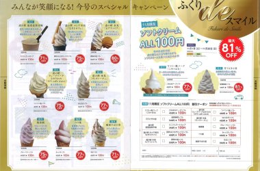 ソフトクリームALL100円 期間:令和7年11月1日(土)~11月30日(日) 名付けて! 『ソフトの陣』 当施設では、フードコート内【ピアファイブ】・【ヴィヴァーチェ】がエントリー