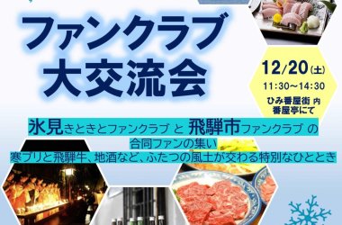 【氷見市×飛騨市ファンクラブ大交流会】開催 岐阜県飛騨市の『飛騨市ファンクラブ』とファンクラブ同士の交流会を行います。 お互いの市が自慢する「飛騨牛🥩」「寒ブリ」「地酒」など海と山の幸を楽しみながら両市の魅力を知っていた […]