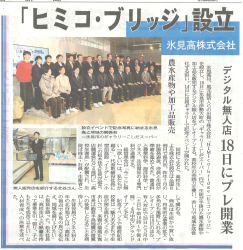 本日! 地元氷見高校が、株式会社「HIMIcoーbridge(ヒミコ・ブリッジ)」を設立し、氷見市伊勢大町の「ギャラリーこしだスーパー」内で、〝デジタル無人店〟プレオープン 生徒が手掛けた農水産物や加工品を販売 […]