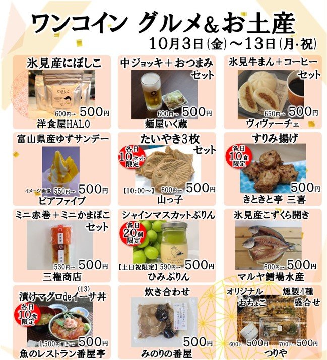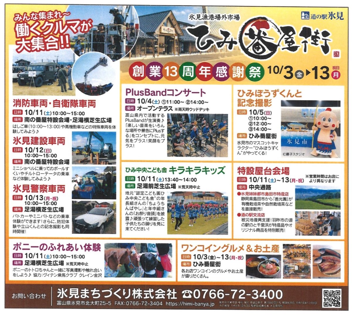 “ひみぼうずくん”がやって来た! 2025/10/05 UP 【ひみ番屋街創業13周年感謝祭】開催中 本日は、ひみ番屋街にステキなゲストが登場✨ 氷見市のマスコットキャラクター“ひみぼうずくん”がやって来ました たくさんのお客様に囲まれ記念撮影 各店舗!ワンコイングルメ&お土産も大盛況 明日もやります