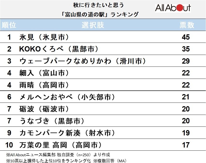 秋に行きたいと思う「富山県の道の駅」ランキング! 【2025年調査】