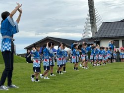 さらに!足湯前芝生広場では、地元“認定こども園ひみ中央こども舎”の年長組さんの「ちょうちんばやし」と年中組さんの「お祭り音頭」を披露