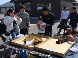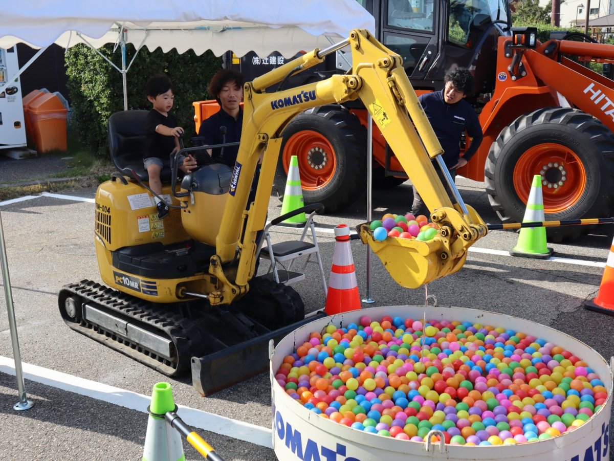 ミニショベルに乗ってのボールすくいやチルトローテータの乗車など体験