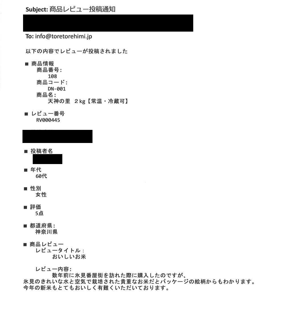 商品レビュー✉が届きました。