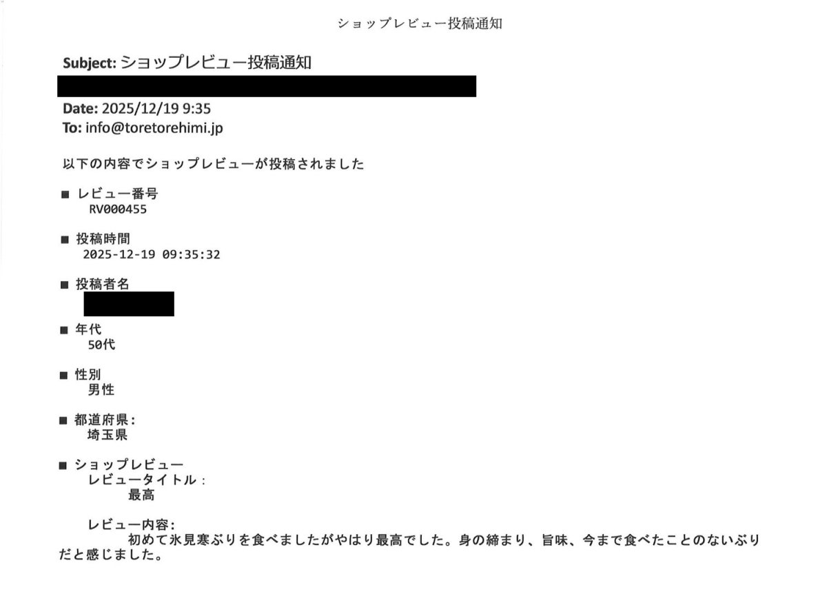 今まで食べたことのないぶりで最高とのお言葉をいただきました。