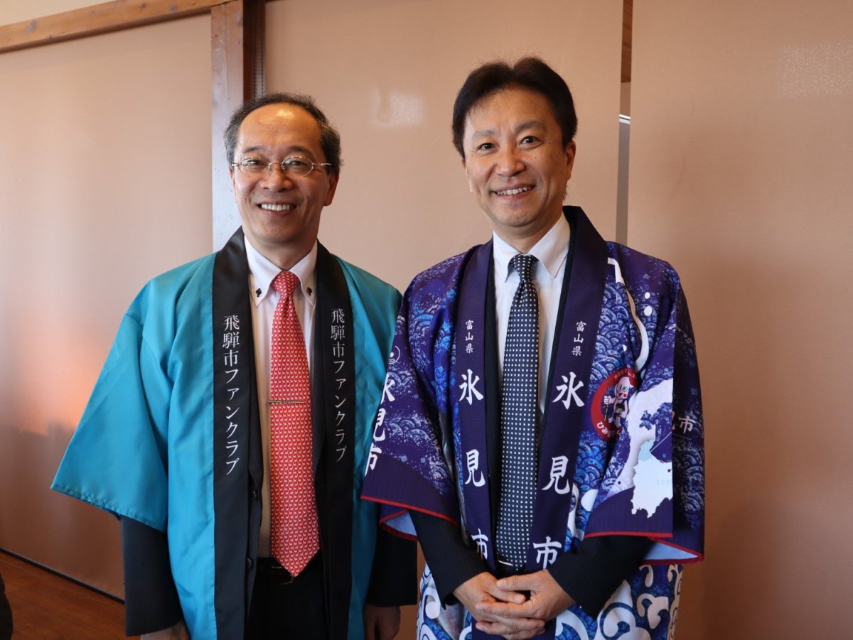 氷見市×飛騨市ファンクラブ大交流会2025 2025/12/20 UP 本日! 【氷見市×飛騨市ファンクラブ大交流会2025】開催 岐阜県飛騨市の『飛騨市ファンクラブ』様との交流会は今回で3回目となります。 菊地市長自らのMCによる”氷見ぶり解体ショー”や“クイズ大会”、“お名刺交換”‥など、催し物が盛りだくさん! 「飛騨牛」「寒ブリ」「地酒」など両市の魅力✨を感じることができました。 氷見きときとファンクラブ会員の皆様、飛騨市ファンクラブ会員の皆様、たくさんのご参加、心から感謝申し上げます。 また、お会いしましょう