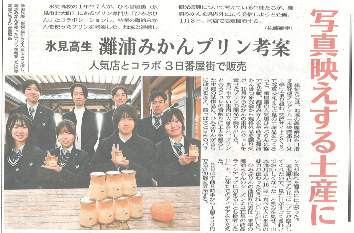 地元氷見高生コラボ『灘浦みかんプリン』限定販売