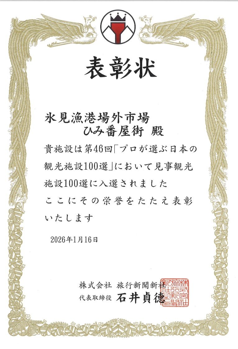 第46回「プロが選ぶ日本の観光施設100選」 入選🎉